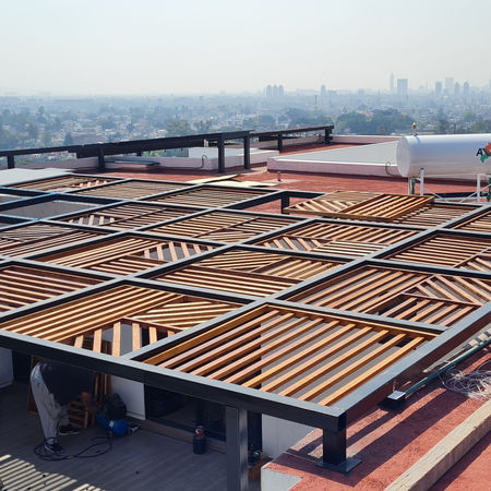 -CONSTRUCCIÓN DE PÉRGOLADO DE MADERA, CON CUBIERTA DE CRISTAL TEMPLADO DE 6 MM.
